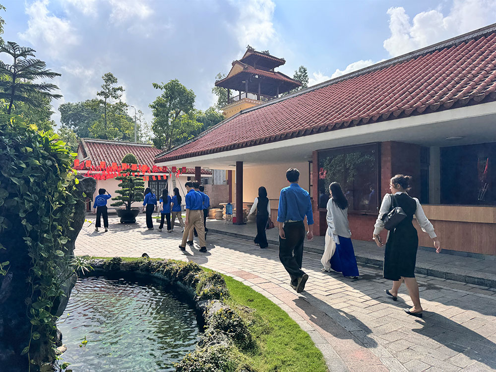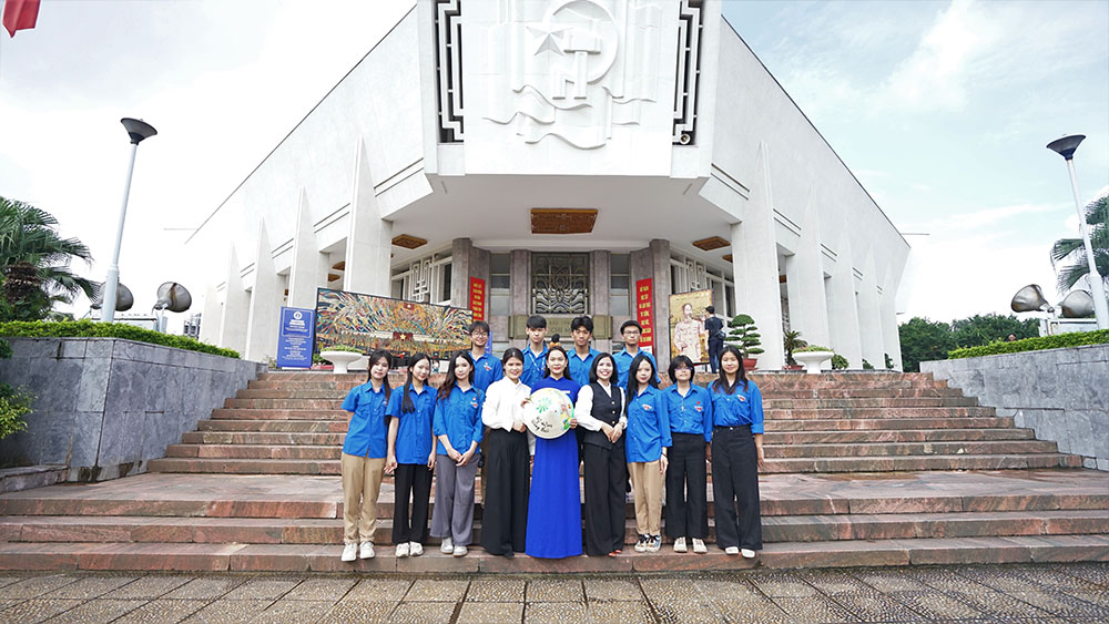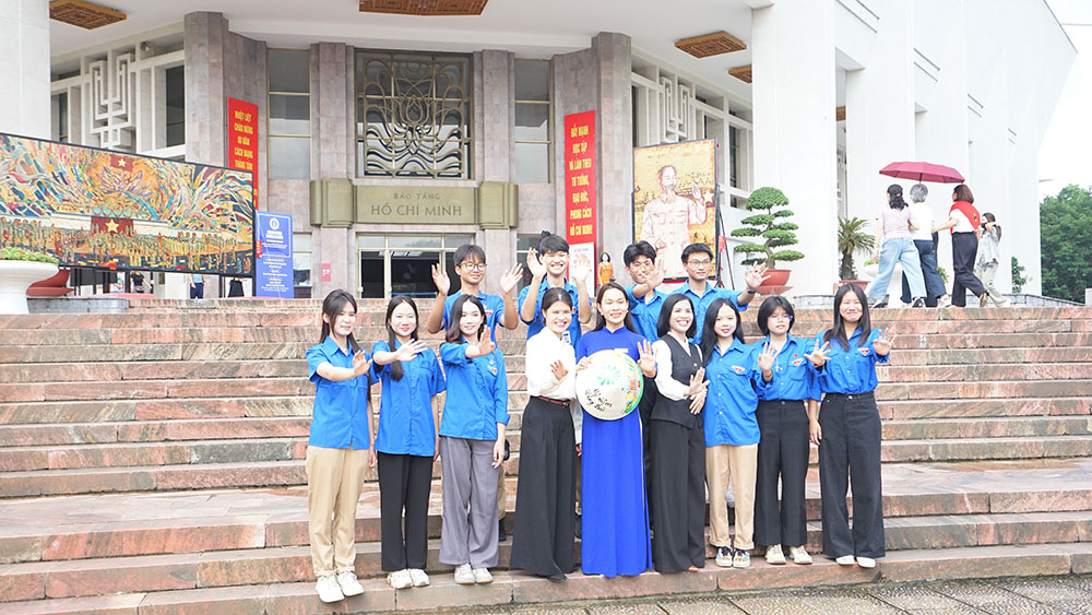 Cán bộ GV và học sinh, sinh viên cùng chụp ảnh lưu niệm tại Bảo tàng Hồ Chí Minh