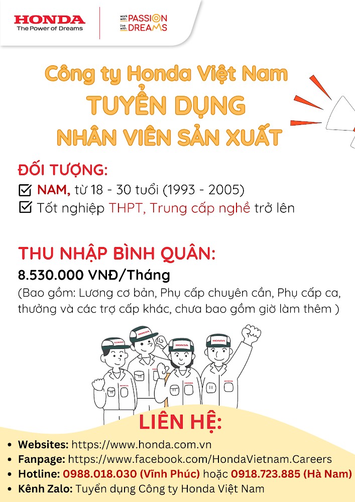- Chưa từng là nhân viên chính thức tại Công ty Honda Việt Nam