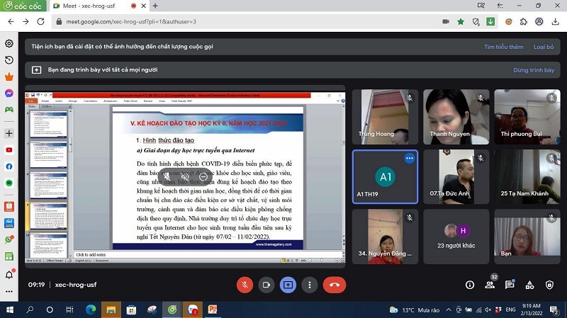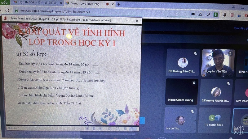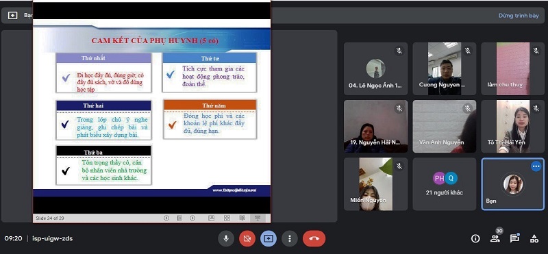 Để tổ chức họp phụ huynh, Nhà trường ủy quyền cho giáo viên chủ nhiệm các lớp chủ trì phiên họp phụ huynh của lớp, gvcn đã gửi đường link và tổ chức kết nối để tổ chức họp đúng giờ, nghiêm túc, đã truyền tải được các nội dung đã chuẩn bị đến phụ huynh.
