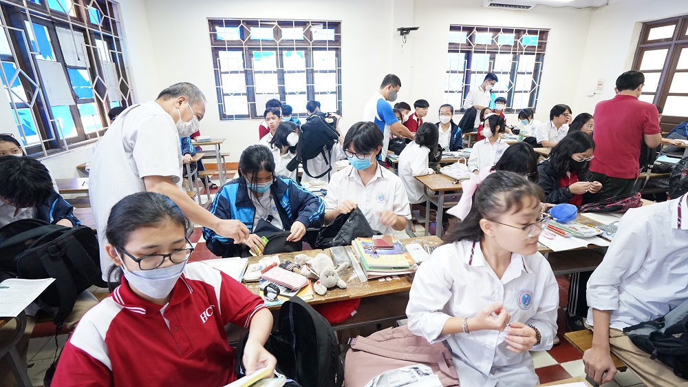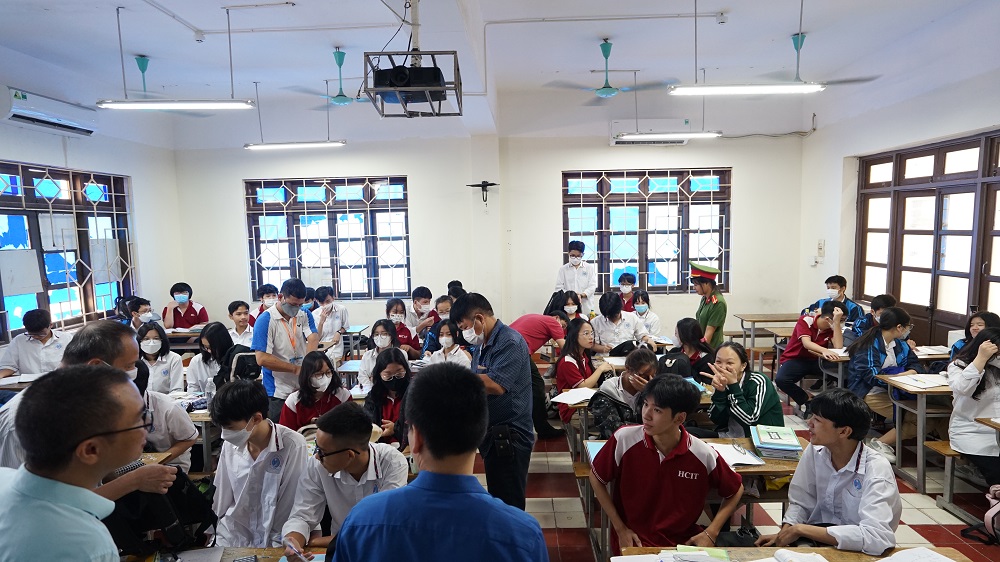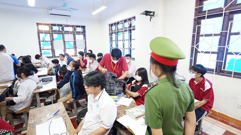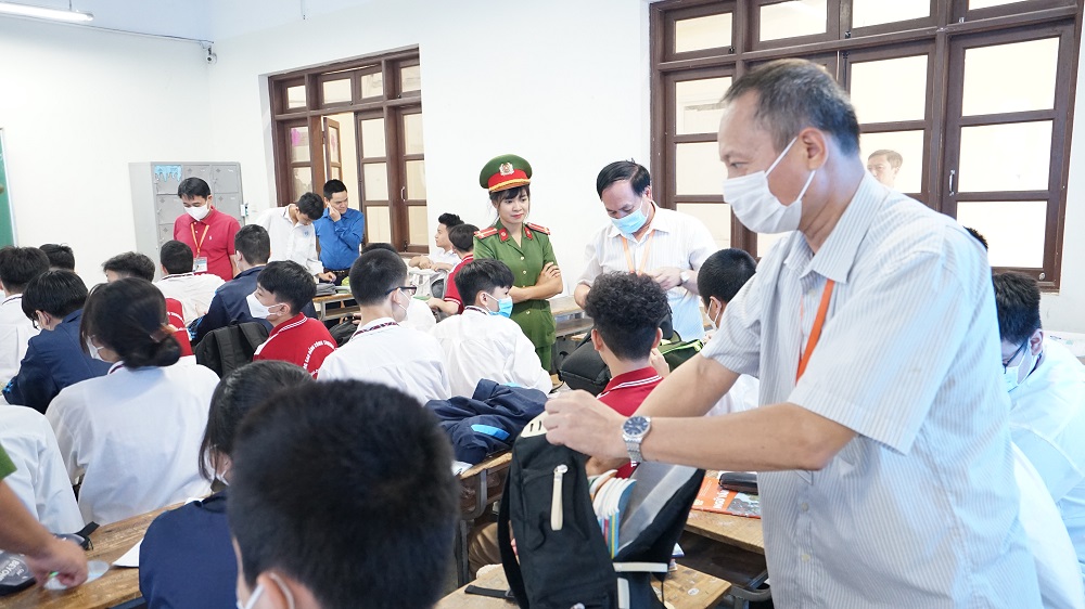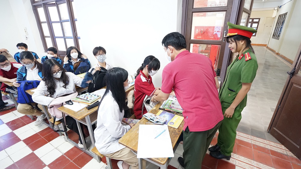 Dưới đây là 1 số hình ảnh phòng CTHSSV, cán bộ giám sát nhà trường phối hợp với Công an Quận Thanh Xuân và Công an phường Thanh Xuân Trung tổ chức kiểm tra hành chính trực tiếp tại các lớp học về việc thực hiện các quy định của pháp luật của học sinh đối với công tác bảo đảm an ninh, trật tự trong nhà trường.