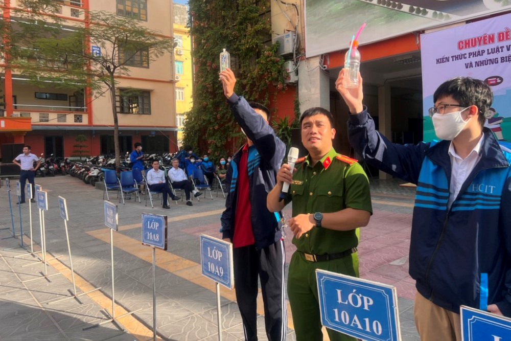 Sau phần báo cáo đánh giá tóm tắt tình hình học tập, rèn luyện của học sinh là phần tuyên truyền, phổ biến kiến thức pháp luật của các chiến sỹ đội phòng chống ma túy, Công an quận Thanh Xuân về tác hại của ma túy, các chất gây nghiện và các biện pháp ngăn ngừa, phòng chống trong môi trường học đường. Hoạt động tuyên truyền phổ biến kiến thức pháp luật là một trong những hoạt động hết sức quan trọng và Nhà trường đã thường xuyên phối hợp với công an quân Thanh Xuân tổ chức nhằm giáo dục, hướng dẫn dẫn học sinh nâng cao ý thức chấp hành pháp luật, tránh sa vào các tệ nạn xã hội, trở thành những công dân có ích cho xã hội.