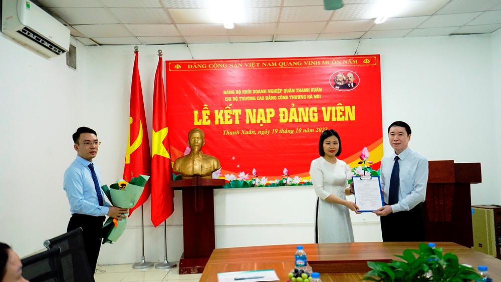 Thay mặt Chi bộ Trường Cao đẳng Công thương Hà Nội, đ/c Nguyễn Đức Huy – Đảng viên chi bộ công bố Quyết định của BTV Quận ủy Thanh Xuân về việc chuẩn y kết nạp đảng đối với quần chúng ưu tú Nguyễn Thị Duyên.