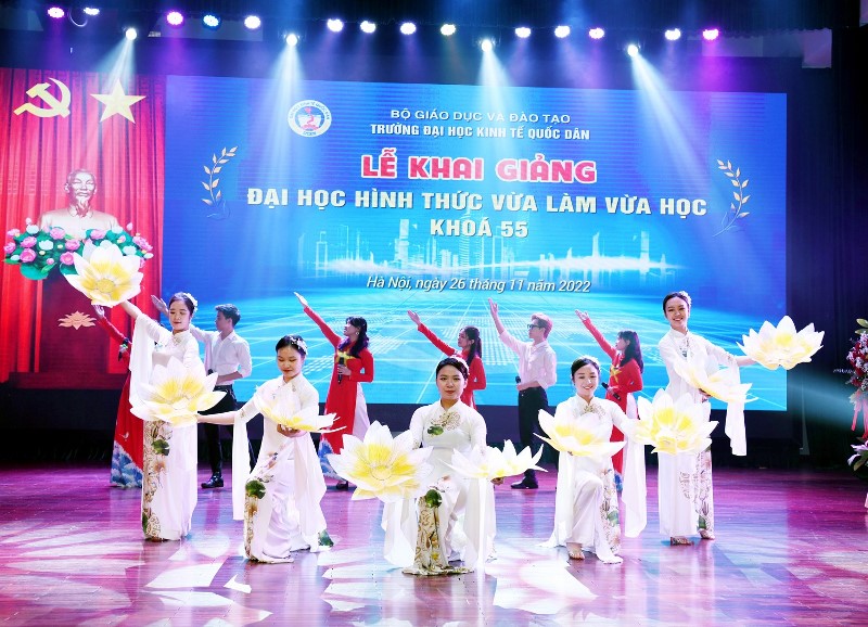 Sáng ngày 26/11/2022, tại Trường Đại học Kinh tế Quốc dân đã diễn ra Lễ khai giảng Khoá 55 cho 599 sinh viên trúng tuyển đại học hình thức vừa làm vừa học.