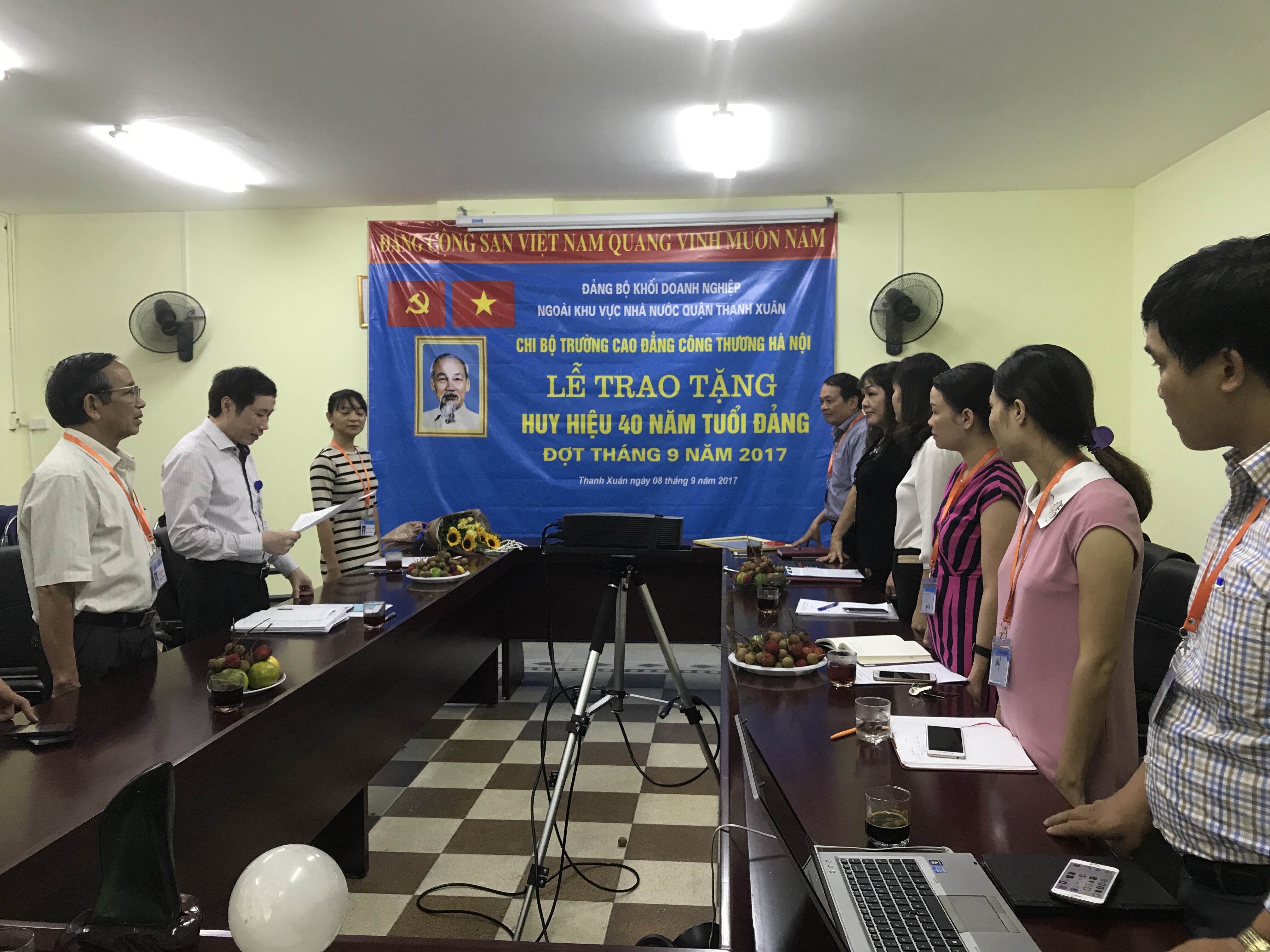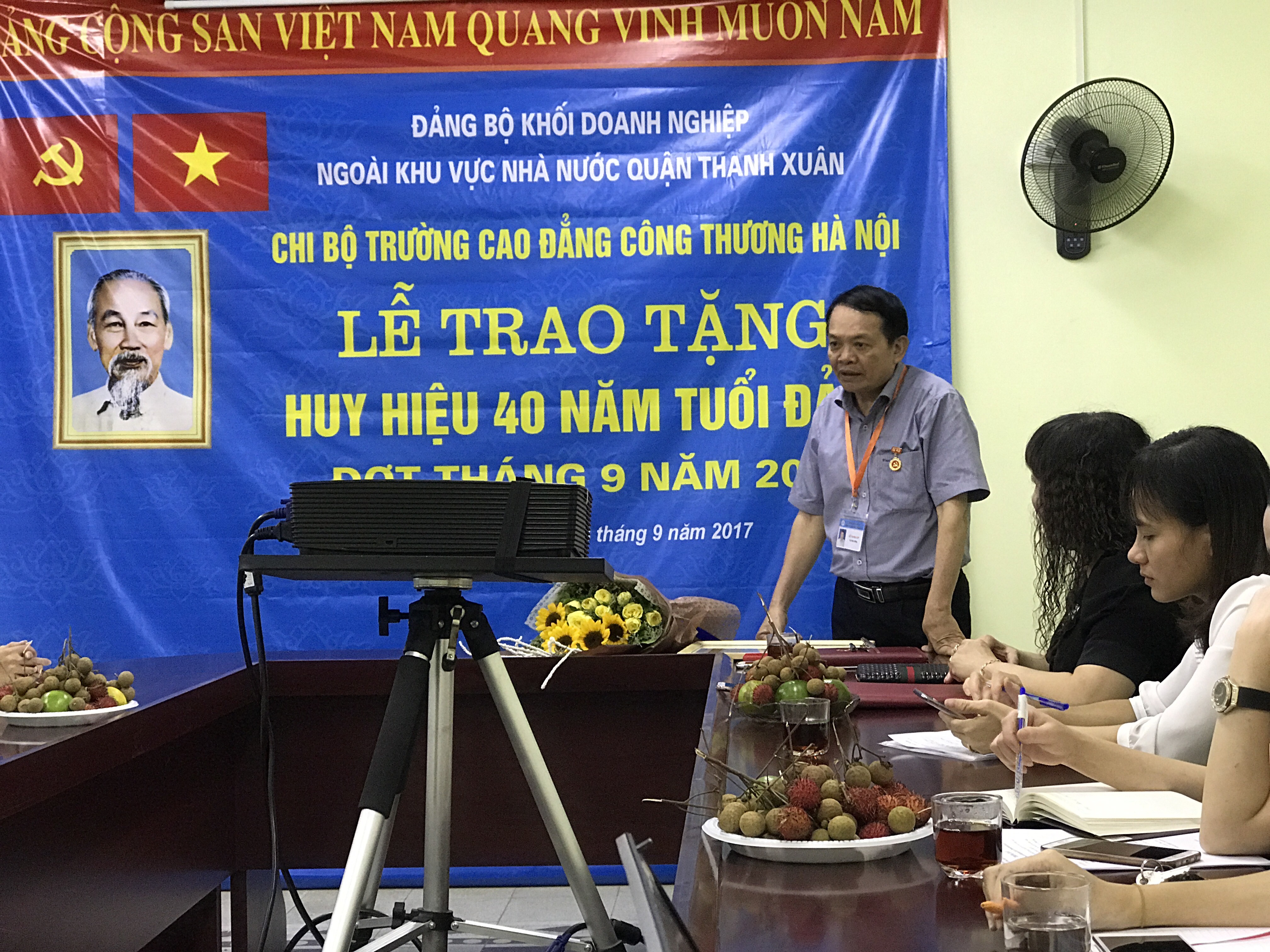 Thực hiện Quyết định số 2553-QĐ/TU ngày 18/08/2017 của Ban Thường vụ Thành ủy Hà Nội về việc Tặng Huy hiệu Đảng đợt 02/09, được sự đồng ý của Đảng ủy khối Doanh nghiệp ngoài KVNN Quận Thanh Xuân, ngày 08/09/2017, Chi bộ trường Cao đẳng Công thương Hà Nội long trọng tổ chức Lễ trao tăng Huy hiệu 40 năm tuổi Đảng cho đồng chí Đỗ Thanh Duy – Bí Thư chi bộ – phó hiệu trường nhà trường