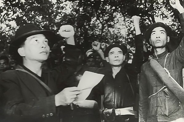 Đồng chí Võ Nguyên Giáp đọc Chỉ thị của Chủ tịch Hồ Chí Minh về việc thành lập Đội Việt Nam tuyên truyền giải phóng quân (Nguồn: Bảo tàng Lịch sử QS Việt Nam)