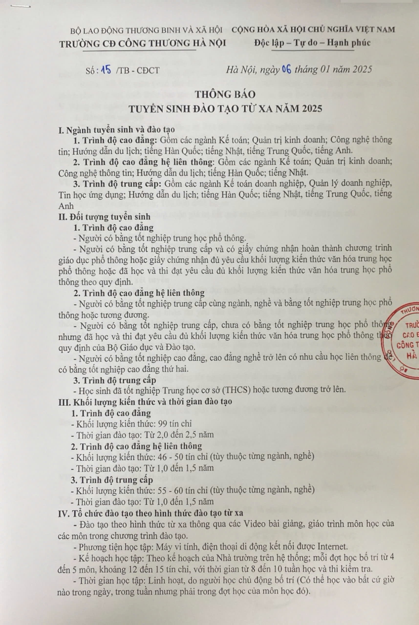 TRƯỜNG CAO ĐẲNG CÔNG THƯƠNG HÀ NỘI