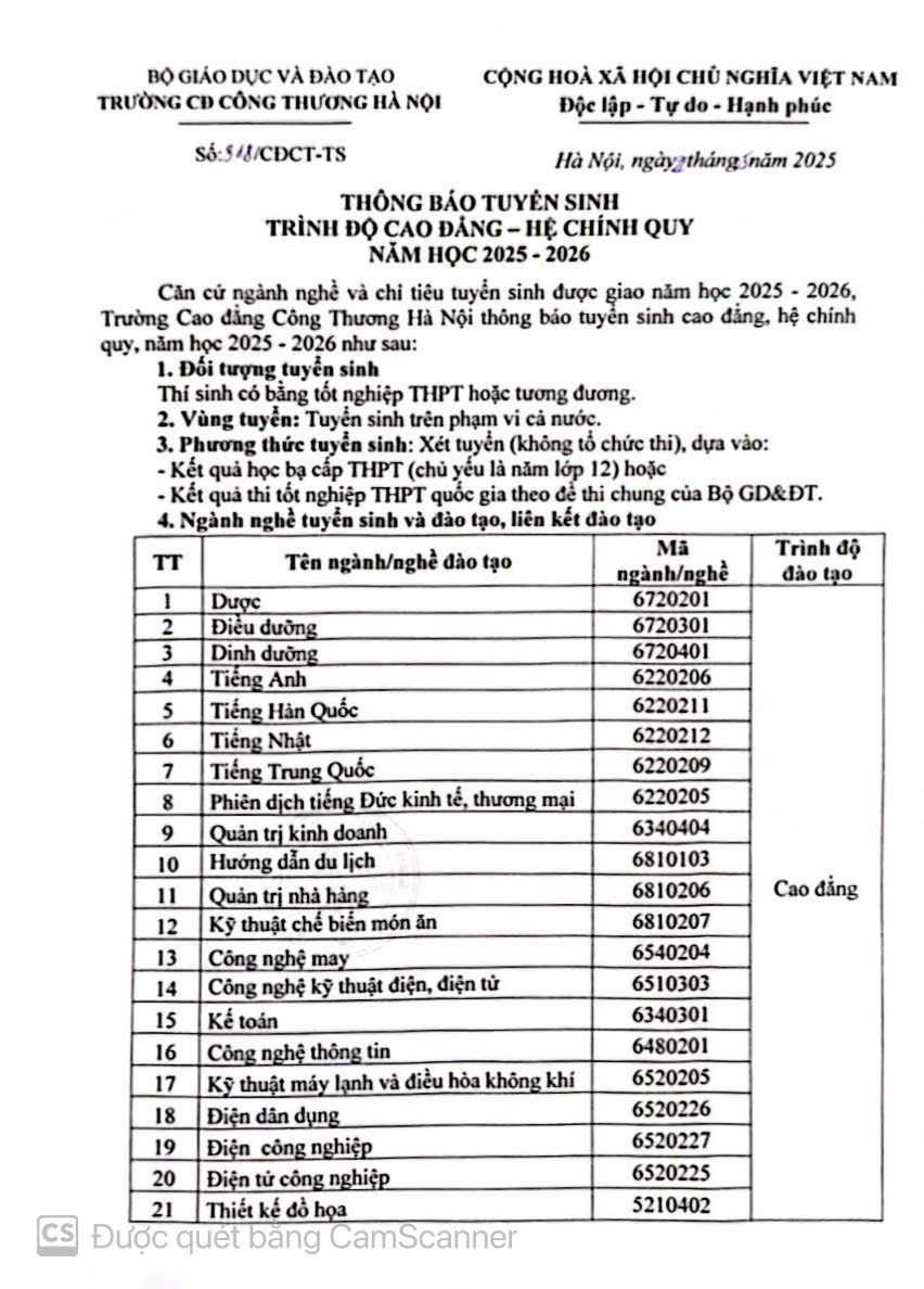 THÔNG BÁO TUYỂN SINH CAO ĐẲNG CHÍNH QUY 2025Tác giảTrung Tâm Thông tin &Truyền thông16:20 - 27/05/2025Chia sẻ: