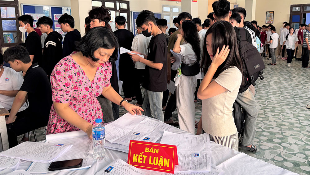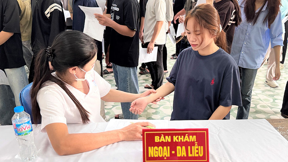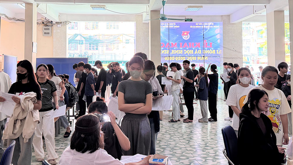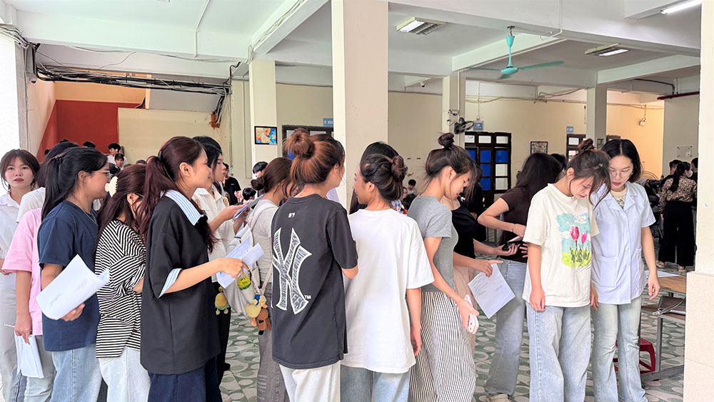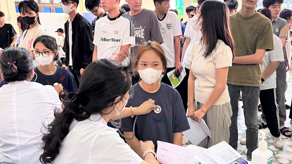 Học sinh hệ 2 văn bằng xếp hàng đợi khám sức khỏe